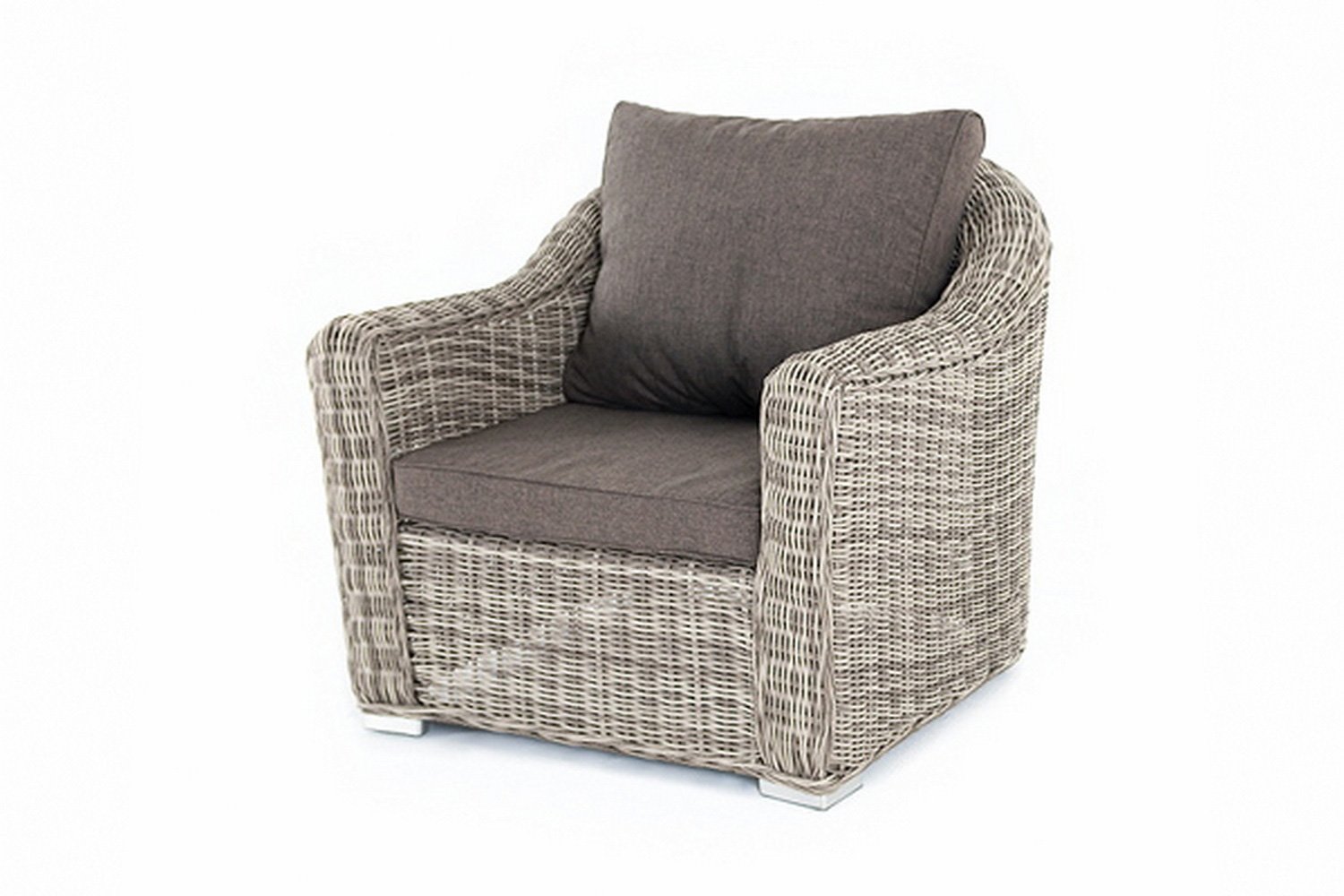 Каркас кресла Фабриция изготовлен из алюминия, покрытие каркаса выполнено переплетением искусственного ротанга. Оба этих материала отличаются особой прочностью, стойкостью к перепадам температуры, осадкам, солнцу и грязи.