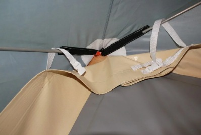Оттяжки пола усиленные и позволяют буксировать (как на санках) собранную палатку с внутренним содержимым.