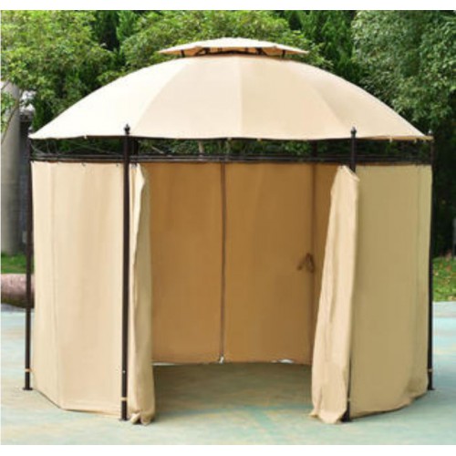 Твином называют очень современный дизайн крыши, который отлично пропускает через себя воздух, есть специальные отверстия, предназначенные для слива воды в тот момент, когда идёт дождь. Каркас беседки изготавливается из кованого металла, имеющего угловую форму. Благодаря этому конструкция становится максимально прочной и оригинальной. В комплекте находится четыре москитных сетки, которые прикрепляются при помощи липучек к каркасу, на них есть молния. У самой беседки квадратная форма, она отлично подойдёт для летнего кафе или для загородного дома, а также празднования разнообразных мероприятий. Она может хорошо защитить от дождя и солнца.