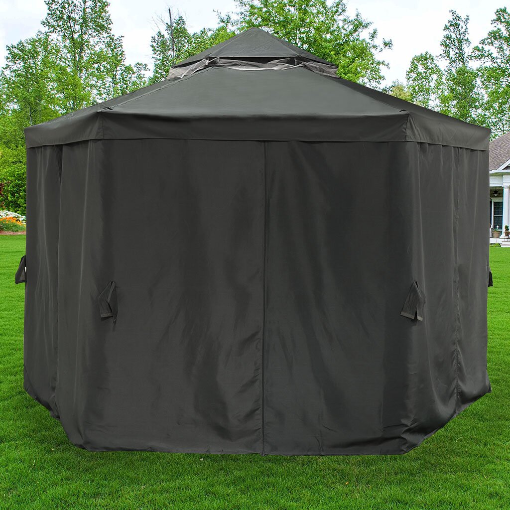 У нас вы можете приобрести тент, предназначенный для шестиугольного шатра с двойной крышей. Данный тент выполнен в сером цвете, подойдёт он для шатра, имеющего размер 1,75 х 1,75 х 2,75 м. Данный тент сможет защитить вас от прямых солнечных лучей, а также осадков, изготовленного из такого материала, как полиэстер с плотностью 210 г.