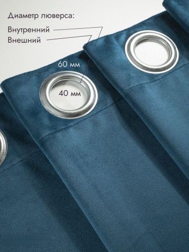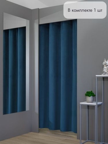 Краткое описание «Штора для примерочной и дома на люверсах бархатная цвет синий, 1 шт.»