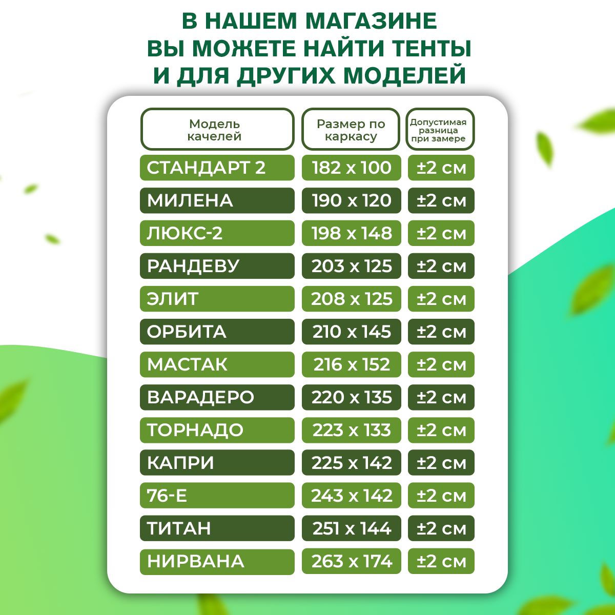 универсальный тент для дачных качелей подойдет ко всем моделям, чья длина сидений не выходит за 225 сантиметров