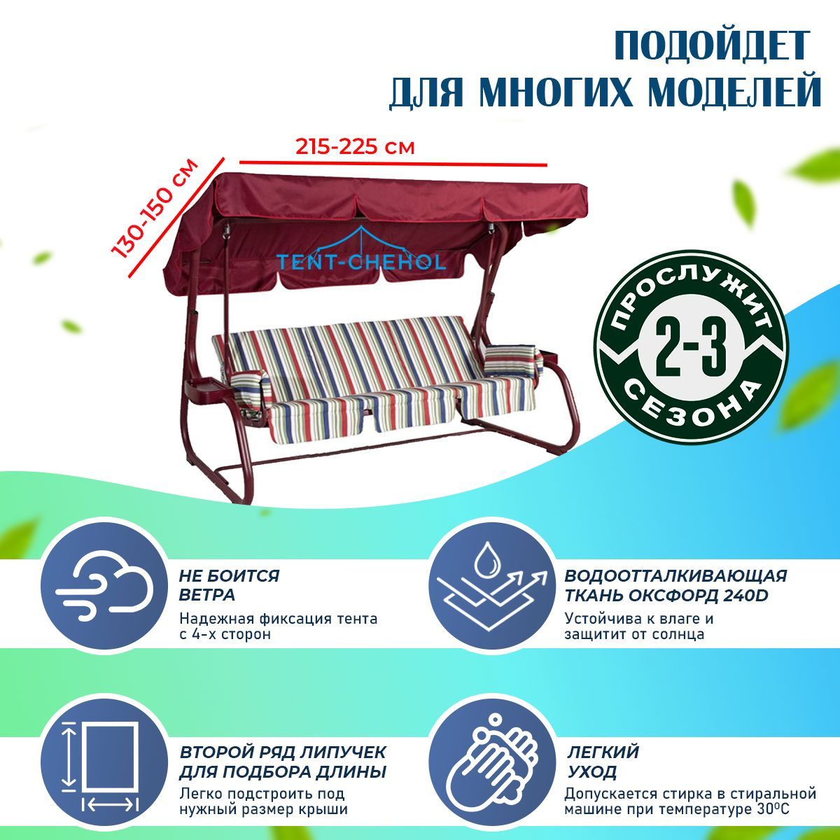 Универсальный тент для садовых качелей, бордовый, длина 210-225, ширина 130-150